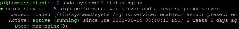 Afterward, you need to configure NGINX as a reverse proxy. All requests to port 80 should be redirected to port 8123.