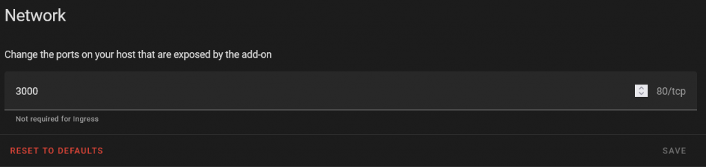 And another port needs to be configured to access Grafana via the website integration. I chose port 3000 but any available port can be used here.