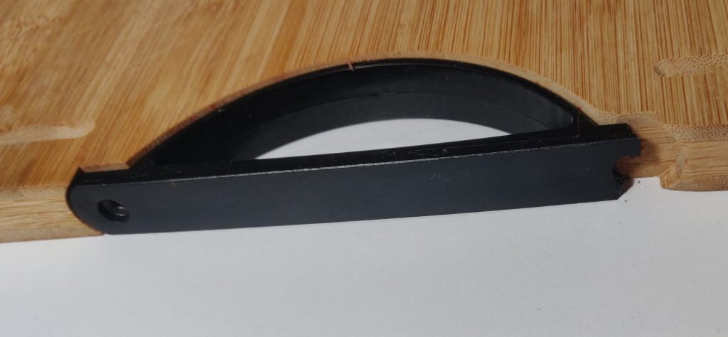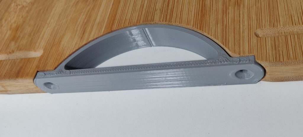 We received a cutting board as a present one day with a broken grip. Which I figured was the ideal use case for a 3D printed part – a replacement can’t be bought and is easy to print. It took me a few tries to get the shape correct, but now it looks great. Printed in grey PLA.
