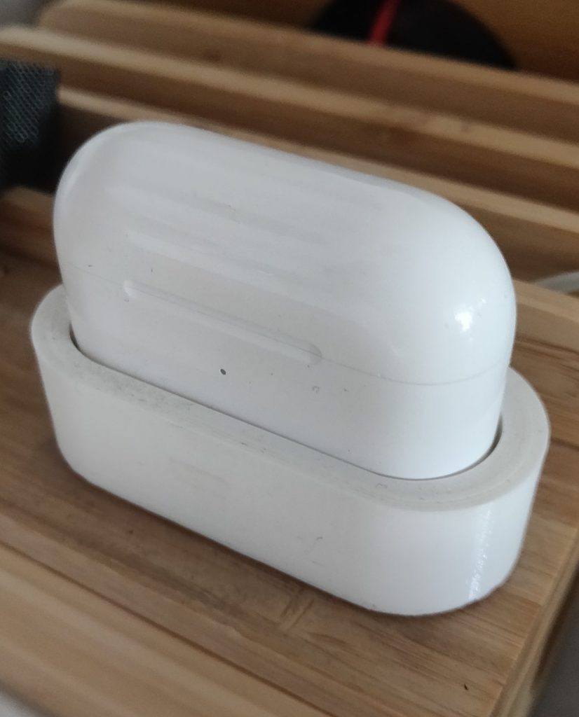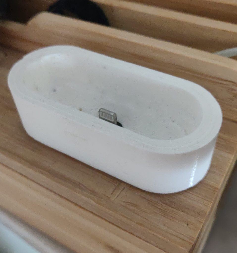 We bought a docking station for our phones, apple watch and air pods. Phones and apple watch were fitting just fine but for the air pods only the cable was supposed to be sticking out which didn’t look right. I designed a mount for the cable to keep it in place and give the case of the air pods a place to be placed. The mount is attached to the docking station via two screws. Printed in white PLA.